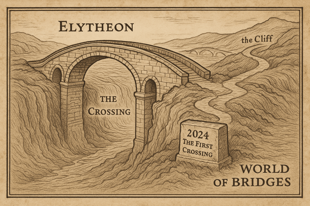 In the old telling, when time had not yet learned to keep its own weight, there was a bridge that stretched between what is known and what is endlessly unknown. This was the Elytheon Bridge, a path that only the living and the brave dared cross, for beyond it lay the Cave of Understanding and Unraveling—a place whispered about through ages, yet never bound to a single map or mountain. Some say it rests beneath the earth, others say it blooms only in the mind. All agree: to find it is to meet oneself beyond time.